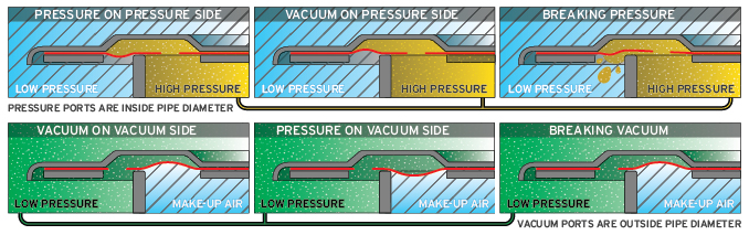The inflating effect of the diaphragm increases as the pressure in the vent rises. This means that when the vent is closer to its set point, the seal is at its greatest performance.